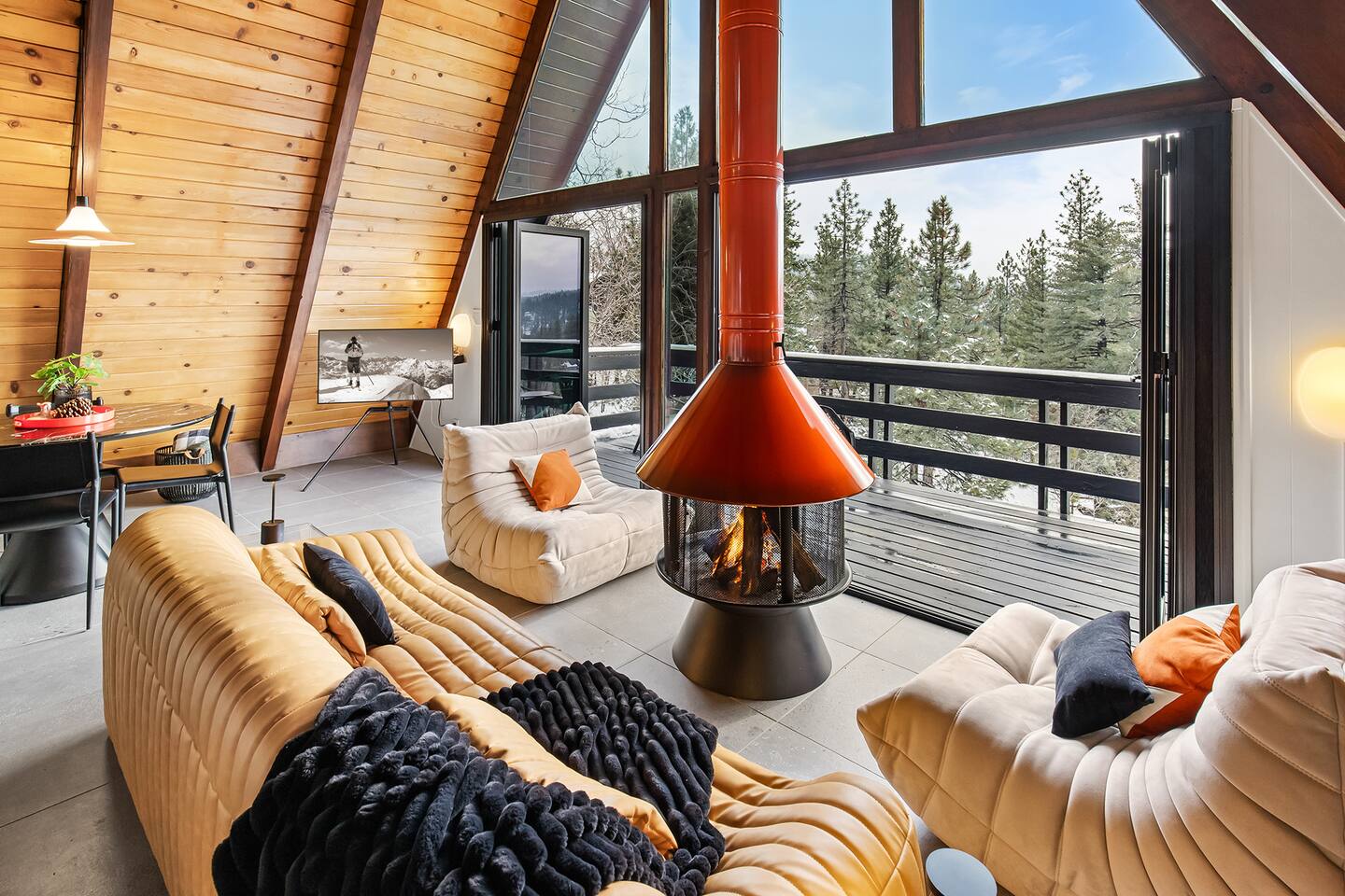 ***If nonrefundable option is chosen then no refund will be given for any reason*** ☆ Radiant heated floors throughout (fee applies) ☆ 6 person hot tub ☆ 21' peak A-Frame; honed trusses ☆ 1970’s original Malm gas fireplace ☆ Wall-to-wall Accordion doors leading to deck ☆ Outdoor gas fire-pit ☆ Towel warmer in bathroom ☆ Central A/C (seasonal) ☆ Board games, puzzles, children's toys ☆ Desk space with mountain views ☆ Modern Chef’s Kitchen with High End Appliances ☆ Two Samsung Frame TVs ☆ Off-street parking (2 vehicles) ☆ Hyper-speed WiFi (358 Mbps) ☆ Washer/Dryer on premises ☆ Solar powered with battery backup ☆ Pack 'n Play ("crib&mattress") provided ☆ Sleeps 5 (2 queen beds, 1 sofa) ☆ Dog Friendly (fee applies) The Lookout is located near many activities: ► Hiking (5 min walk) ► Arrowbear Lake (10 minute walk) ► Snow Valley (5 min drive) ► Snowdrift Tubing (5 min drive) ► Green Valley Lake (10 min drive) ► Santa's Village (15 min drive) ► Snow Summit (25 min drive) ► Lake Arrowhead (20 min drive) ► Lake Gregory (20 min drive) ► Big Bear Lake (20 min drive) This is a nonsmoking property. A Rental Contract is Required upon booking. Unfortunately we are unable to host cats due to host and guest allergies. San Bernardino County STR Permit #CESTRP-2023-00612