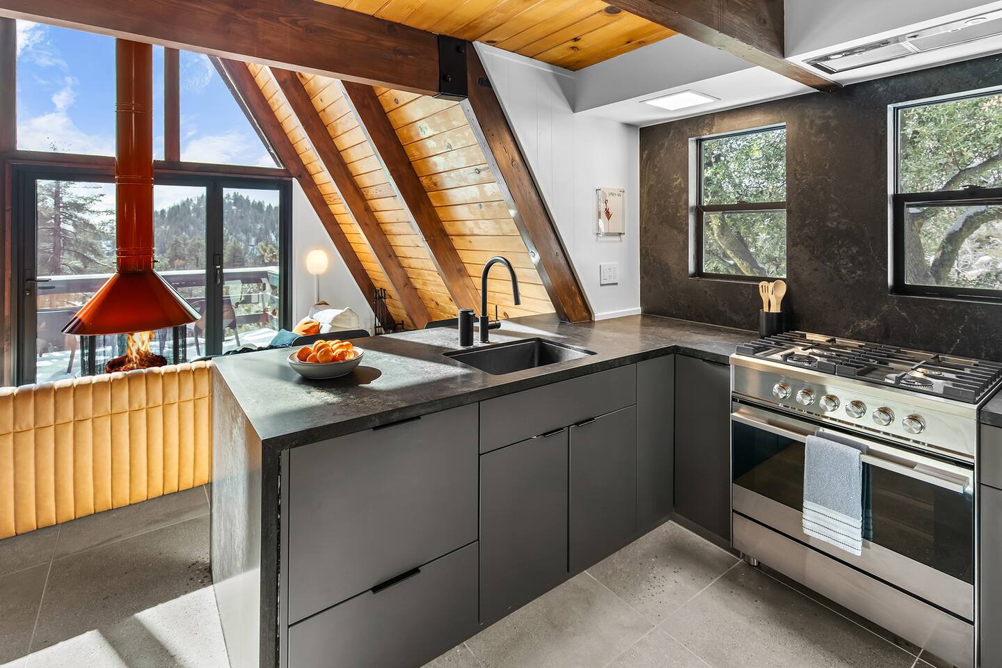 Perched on stilts, this modern Swiss chalet is nestled in the mountains of Southern California. Designed with tranquility and comfort in mind, the cabin blends its 1970’s charm while elevating modern luxuries like heated floors, a chef’s kitchen, and wall-to-wall doors. Enjoy all nature has to offer with skiing in the winter, hiking in the summer, and breathtaking views, epic sunsets, and stargazing all year round.