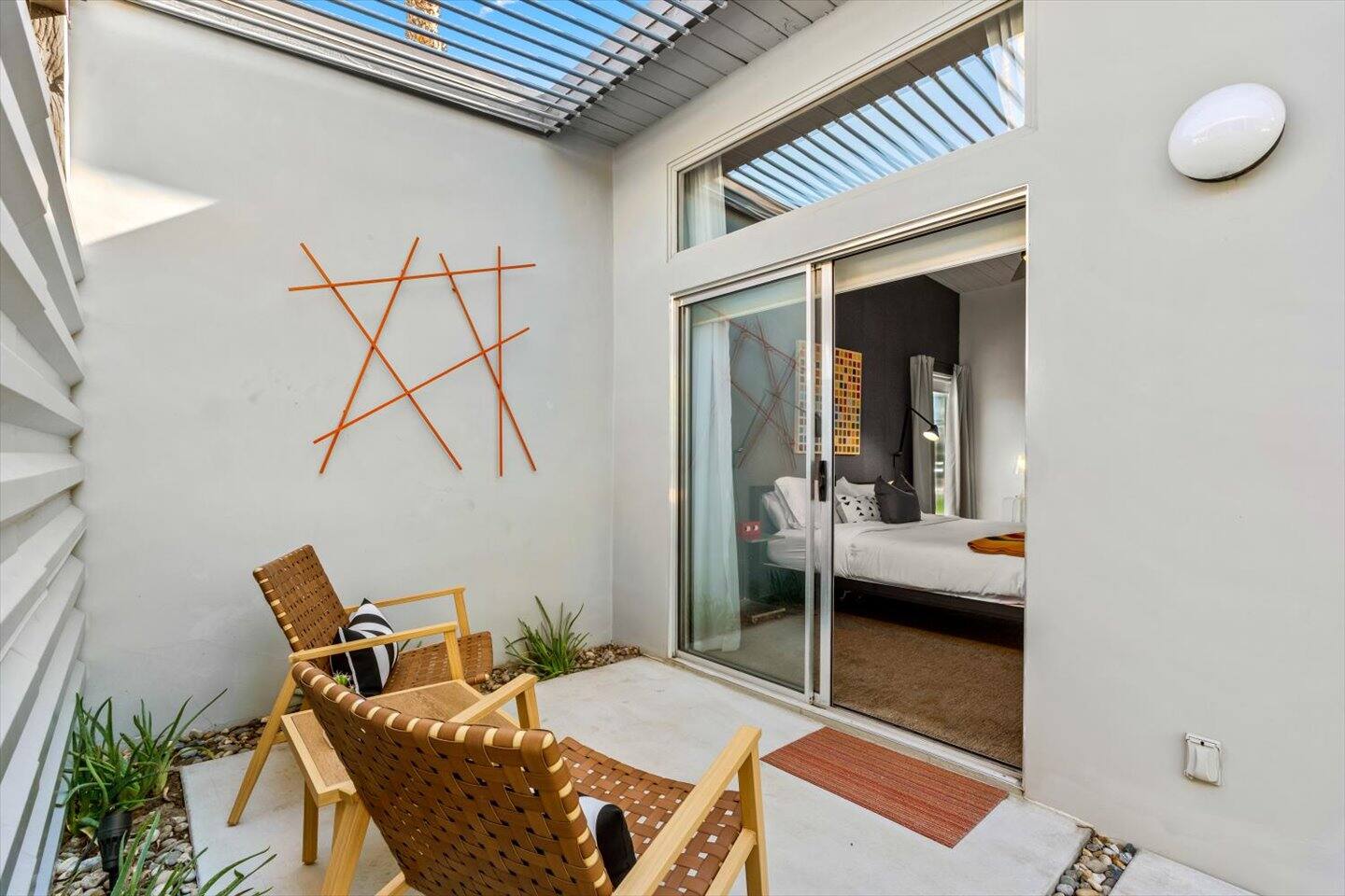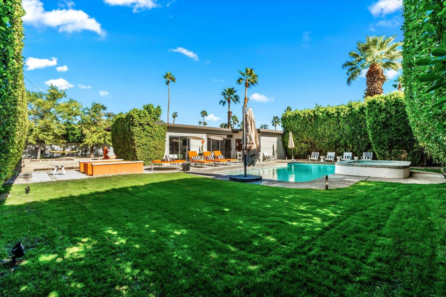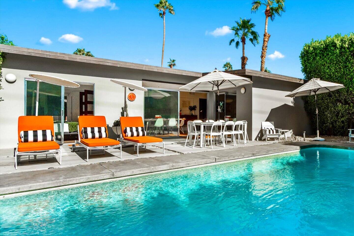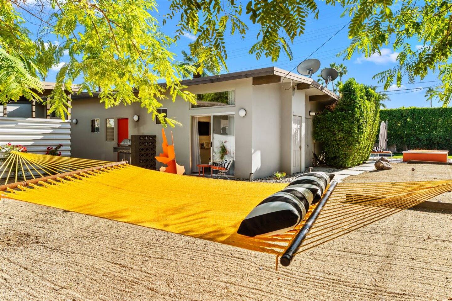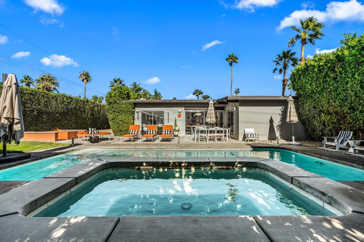 The City of Palm Springs requires an additional written contract, which will be sent to you shortly after booking. The city prohibits music and loud noise. The city strictly enforces these rules and prohibits parties, events, music, street parking, and disruptive guests. No outdoor music is allowed at any time. Quiet hours are between 9:00 pm and 10:00 am, and guests are asked to be mindful of neighbors. Overnight guests shall not exceed the property’s posted occupancy. Pets are welcome for an additional $125 per-stay pet fee. Pool Heat is an additional $100/night. Spa heat is included in the nightly rate. This home is equipped with a security camera by the front door and in the carport for your security and protection. No cameras are located in the backyard or inside the house. Service providers, such as pool cleaners and landscapers, are scheduled regularly while you're staying with us. They let themselves into the yard without notice.