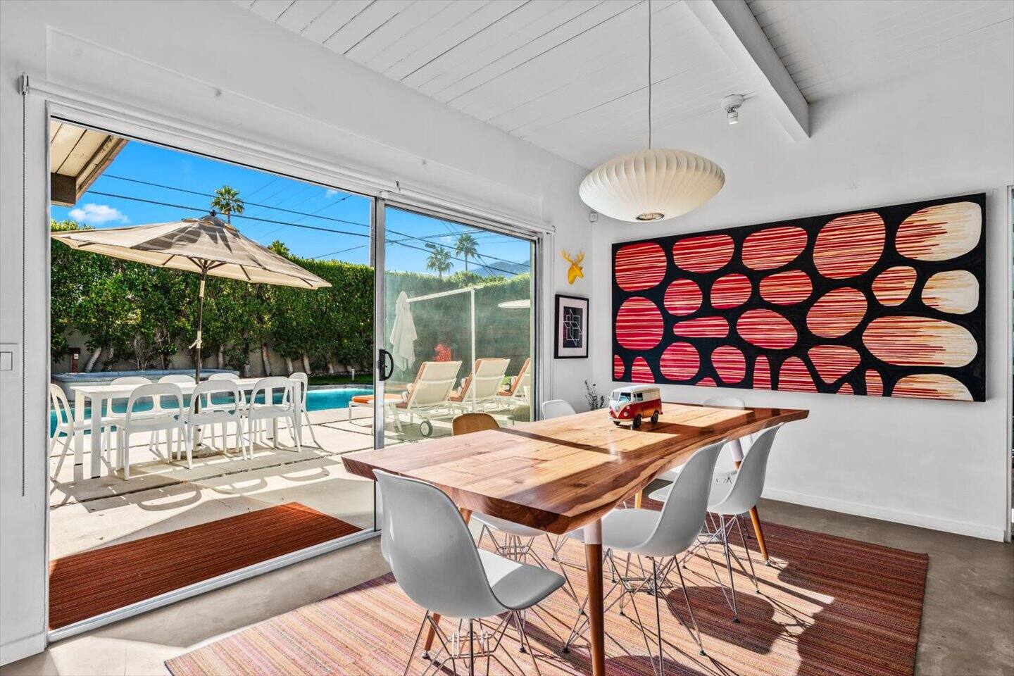 Enjoy a picture-perfect poolside vacation at the Meiselman Art House, a stylish desert oasis with resort-style pool and spa. This historic home was just remodeled preserving its distinguished Meiselman character while updating modern amenities and outdoor spaces. It’s the ideal spot for a luxurious holiday getaway, just a short drive from local attractions. 5 Min Drive to Downtown 10 Min Drive to Indian Canyons 55 Min Drive to Joshua Tree